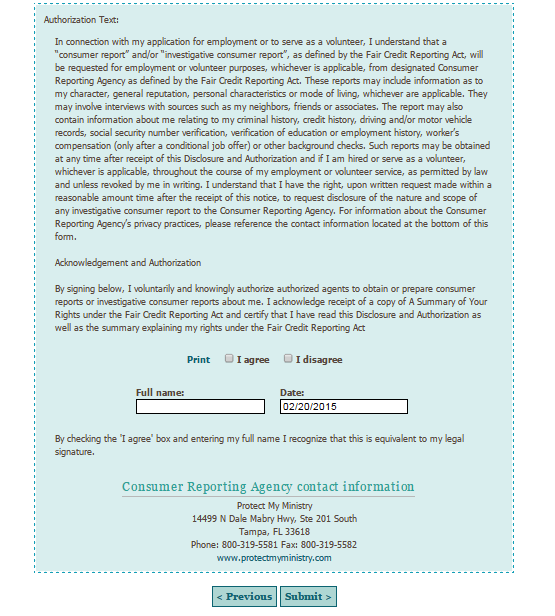 If you have a volunteer that does not have access to the online application, you can enter his/her information into Ministry Mobilizer yourself. These background screening orders will be billed to your credit card.