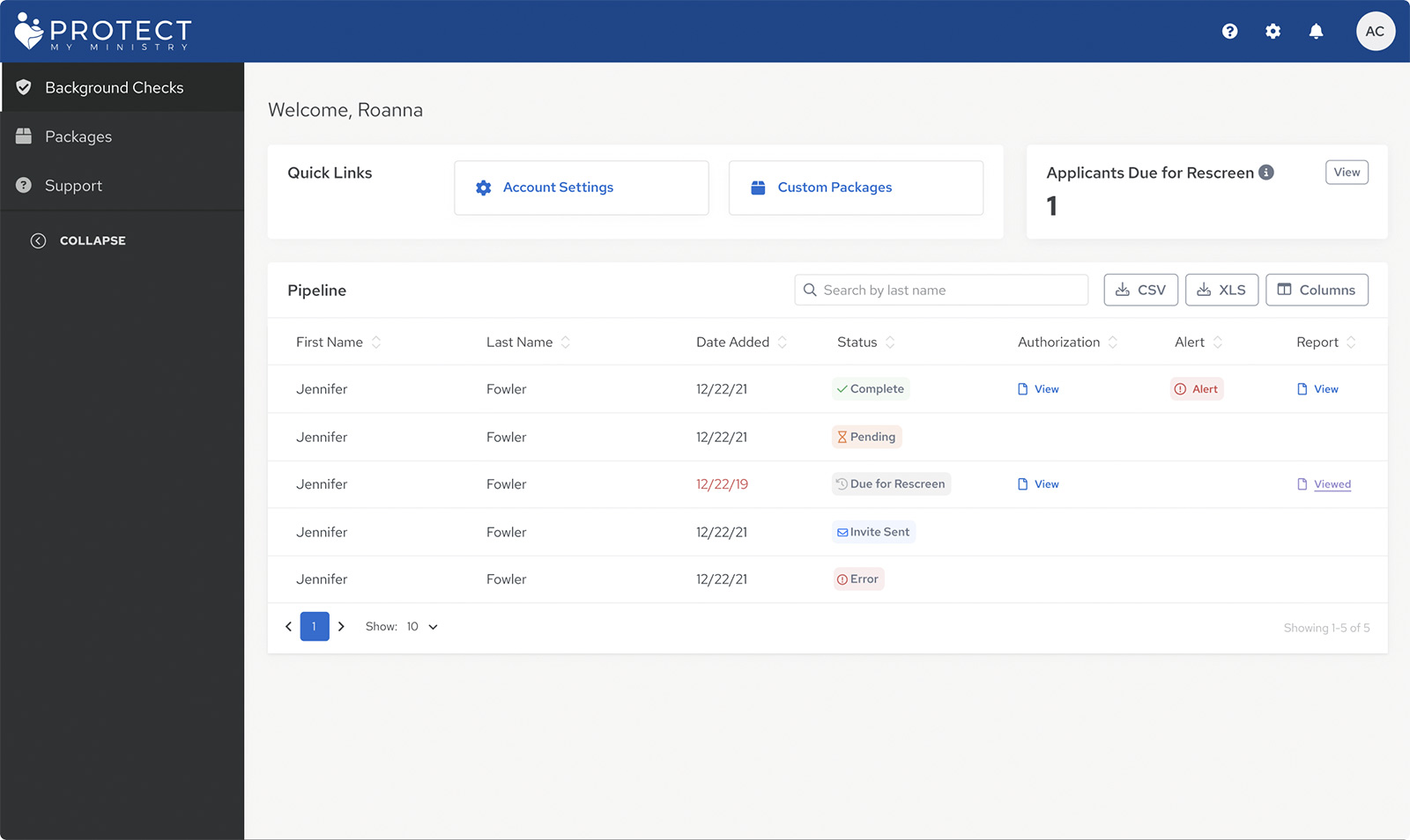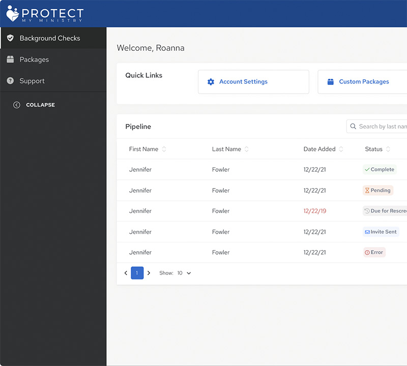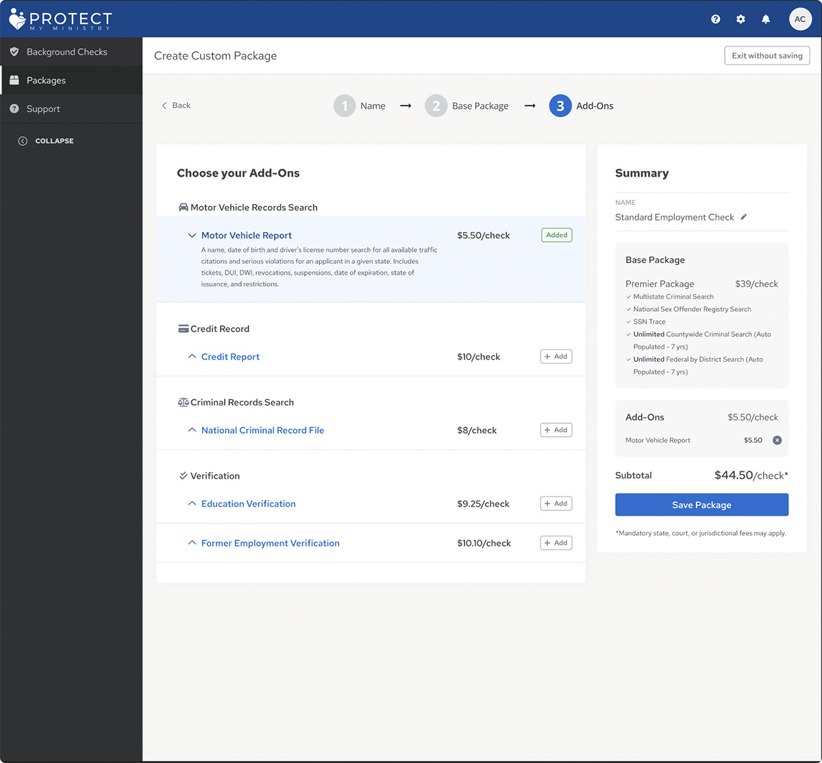 Our most-ordered background check packages are pre-loaded into your Paylocity account through the integration. If you want to customize by role or location, simply create custom packages within the Protect My Ministry dashboard and they automatically flow into your Paylocity account.